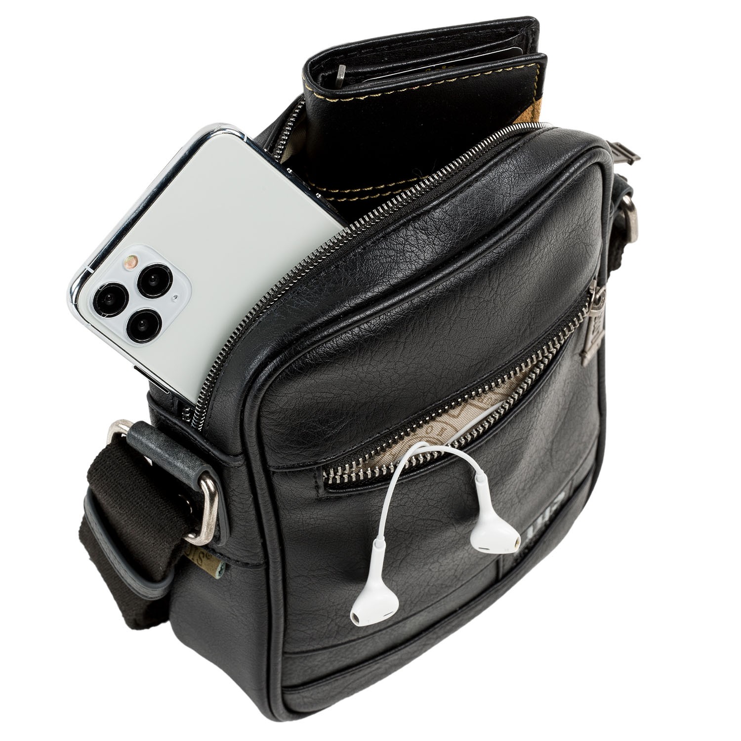 Innen: Tasche mit Reißverschluss und Organizer. Innen bedrucktes Futter.