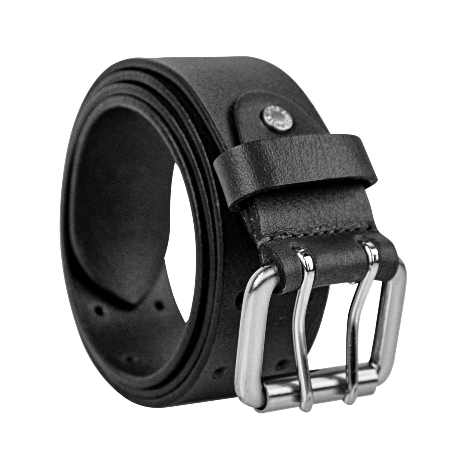 Metallschnalle mit Doppelschnalle oder Nadel und geprägtem Logo auf dem Leder.