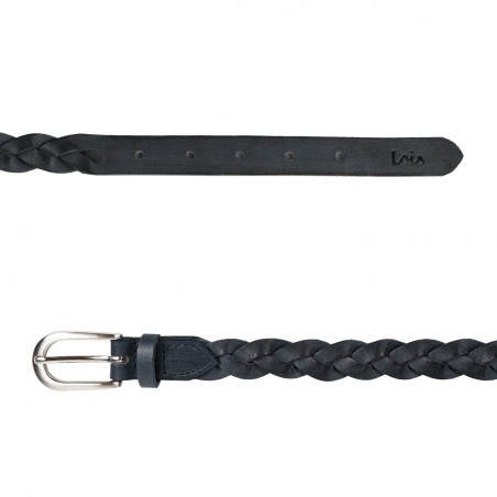 Damen-Echtledergürtel von Lois. Schnalle aus Metall. Geflecht und geprägtes Logo.