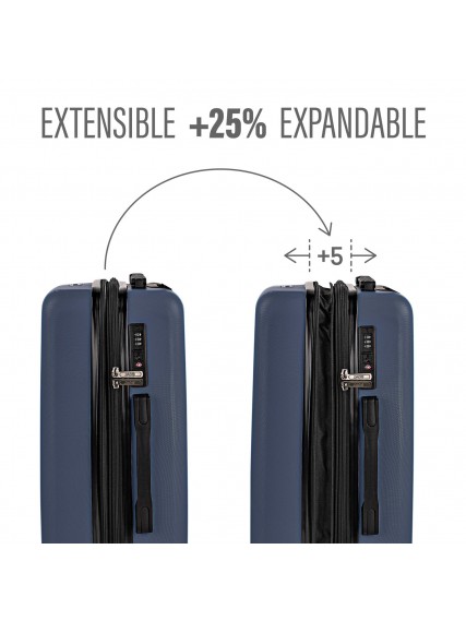 Dieser Koffer ist erweiterbar, indem seine Kapazität um bis zu 35% erweitert wird.