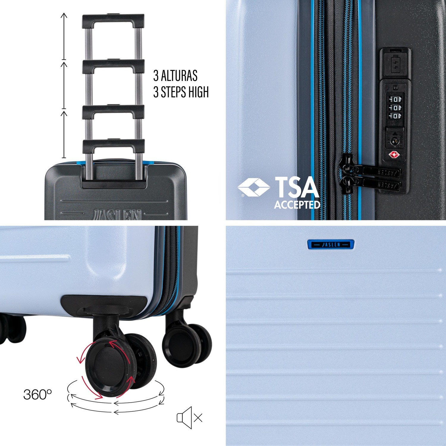 Discover the new SALZBURG collection by JASLEN, specializing in Cabin Travel Luggage 55X40X20. Designed to meet airline standards, this carry-on suitcase is durable, lightweight and functional. With the ideal size of 55X35X25, its trolley-style design and excellent material finish ensure durability, mobility and style. Perfect as Hand Luggage, Cabin Luggage and Suitcase 55X40X20 for any type of travel. The collection stands out for the selection and quality of materials.