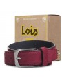 Cinturon de la marca Lois, con exclusivo diseño, hebilla y marca grabada en el cinturon en forma de toro. Ancho de 35 mm en tres tamaños 95/105/115. Fabricado en cuero terciopelado.