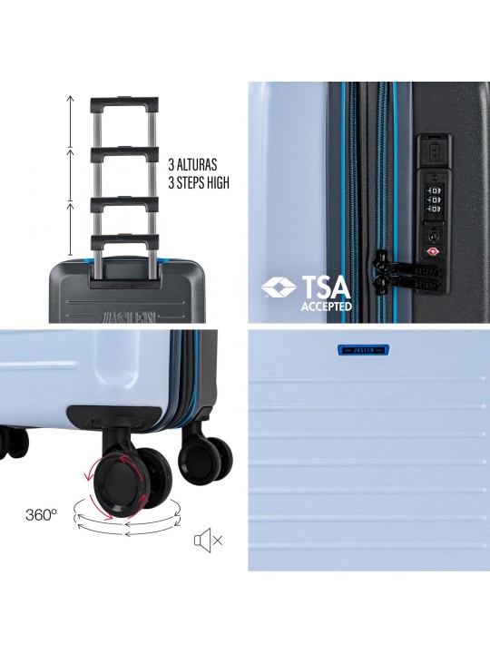 Descubre la nueva colección SALZBURGO de JASLEN, especializada en Maletas De Viaje Cabina 55X40X20. Diseñada para cumplir con los estándares de aerolíneas, esta Maleta De Mano es resistente, ligera y funcional. Con el tamaño ideal de 55X35X25, su diseño tipo Trolley y el excelente acabado de materiales aseguran durabilidad, movilidad y estilo. Perfecta como Equipaje De Mano, Maletas De Cabina y Maleta 55X40X20 para cualquier tipo de viaje. La colección destaca por la selección y calidad de los materiales.