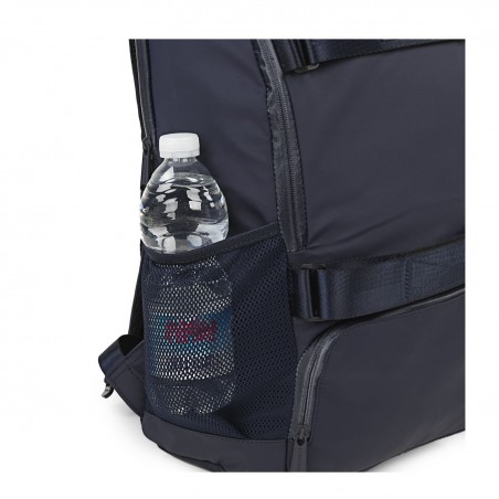 Exterior: Mochila con dos compartimentos con cierre de cremallera, uno acolchado apto para portátil de 15,6" pulgadas. Ideal para llevarla durante horas sin que te moleste gracias a su espalda acolchada y transpirable y sus tirantes regulables y acolchados que tienen incorporados una cinta de unión para repartir mejor el peso. Tiene dos bolsillos laterales de malla y un bolsillo frontal con cierre cremallera para zapatos o ropa sucia. Tiene una gran obertura principal, la cual, no permite acceder a todos los bolsillos interiores sin ninguna complicación.