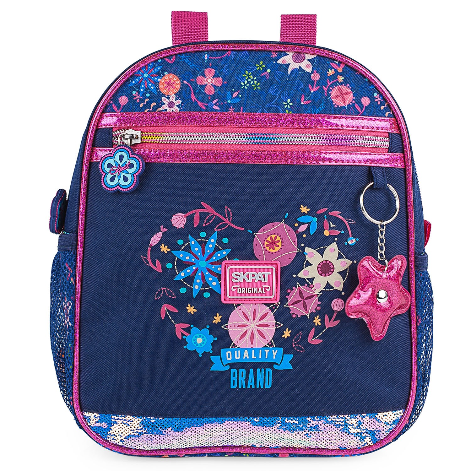 SKPAT sorprende con su nueva colección estampada con flores, lentejuelas y brillos purpurina que iluminarán la carita de tu hija con todas las piezas necesarias e imprescindibles para el cole: mochilas, bolsas, portaflautas, neceseres, estuches, etc.