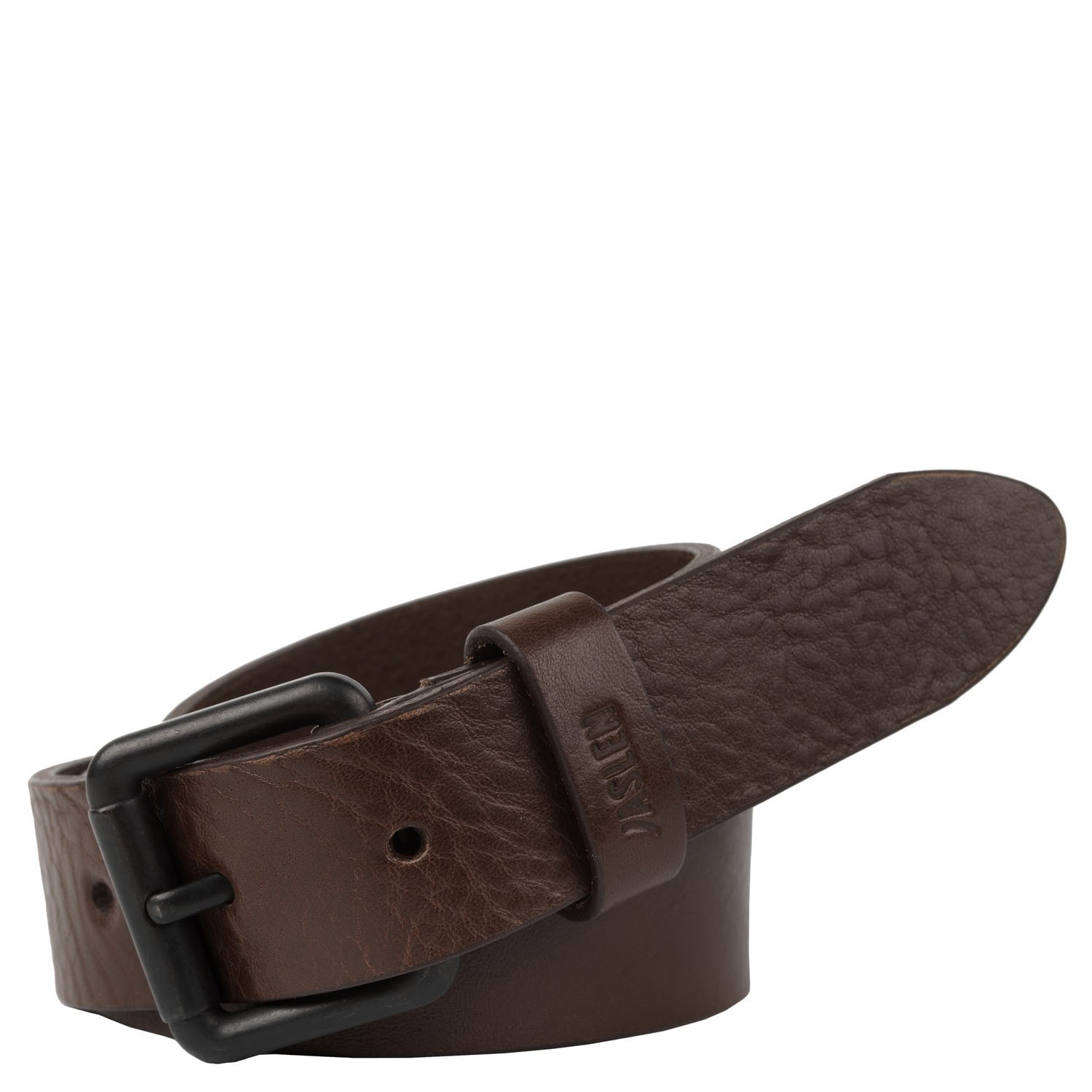 Cintura in vera pelle da uomo di JASLEN. Fibbia metallica. Logo in rilievo