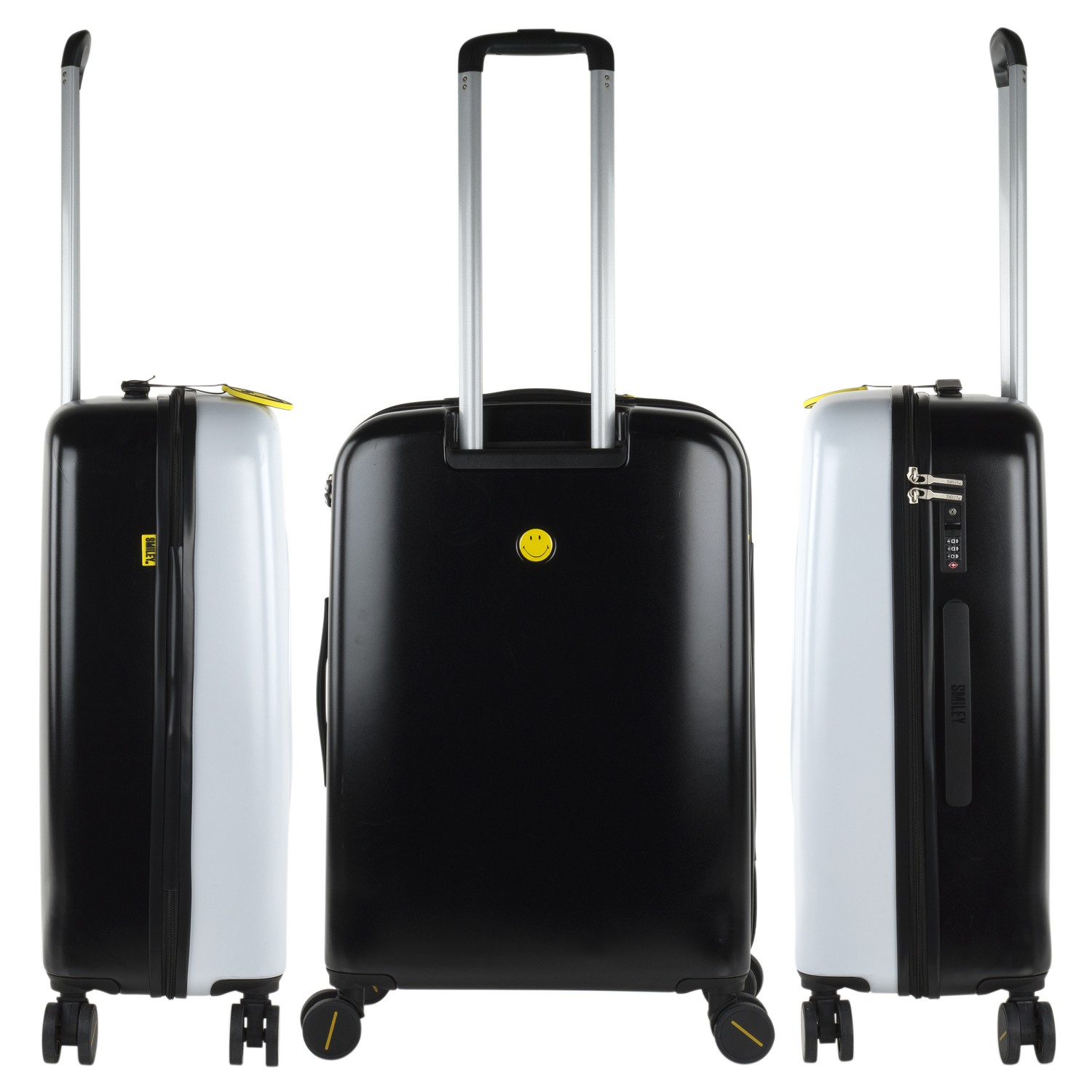 Smiley Original è un marchio riconosciuto specializzato nella produzione di valigie e accessori da viaggio di alta qualità. La collezione SMILEY ORIGINAL è una delle linee più popolari del marchio, caratterizzata da un design elegante in tonalità scure e da un materiale in poliestere resistente. Le valigie SMILEY ORIGINAL di Smiley Original offrono una grande capacità e comodità d uso grazie al sistema di quattro ruote multidirezionali e al manico telescopico regolabile. Inoltre, sono dotate di una chiusura a cerniera e di diversi scomparti interni per mantenere i vostri effetti personali organizzati e protetti durante i vostri viaggi.
