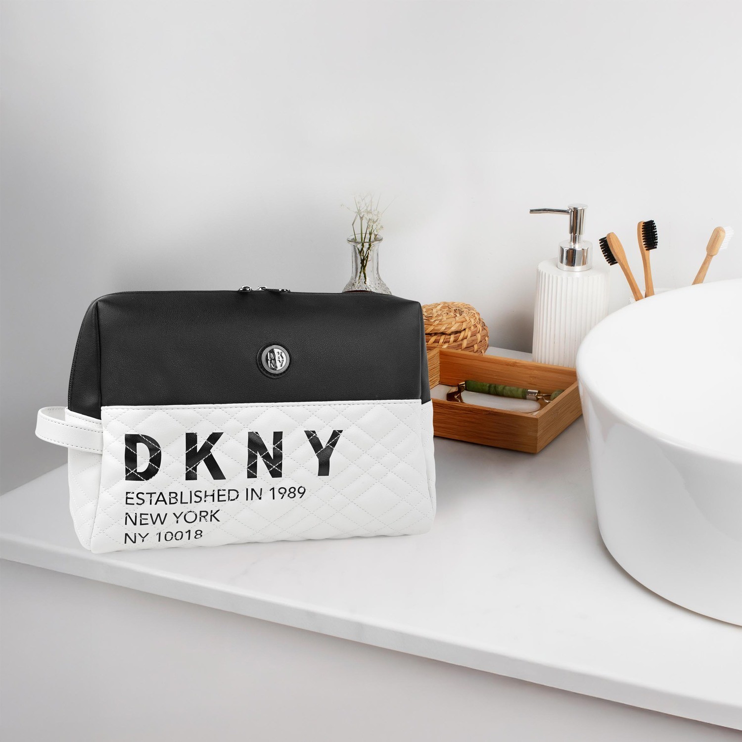 Scoprite l esperienza unica di DKNY con la nuova collezione, specializzata in borse da toilette da donna. Realizzate in PVC, queste borse da toilette si distinguono per la loro qualità superiore, offrendo durata e stile. Perfette per organizzare il trucco e gli articoli da toilette, sono il compagno ideale per i viaggi o per l uso quotidiano.