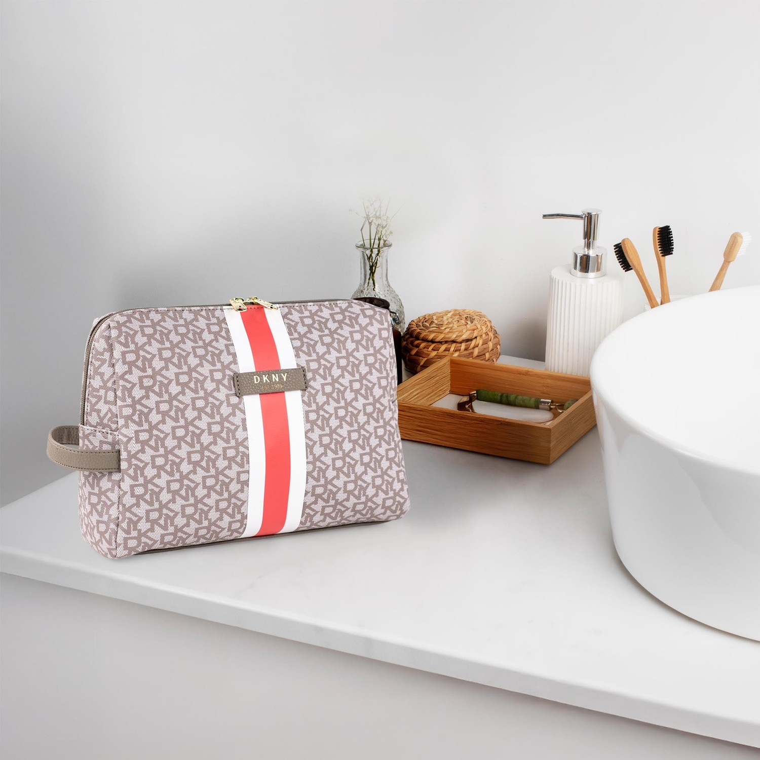 Scoprite l esperienza unica di DKNY con la nuova collezione, specializzata in borse da toilette da donna. Realizzate in PVC, queste borse da toilette si distinguono per la loro qualità superiore, offrendo durata e stile. Perfette per organizzare il trucco e gli articoli da toilette, sono il compagno ideale per i viaggi o per l uso quotidiano.