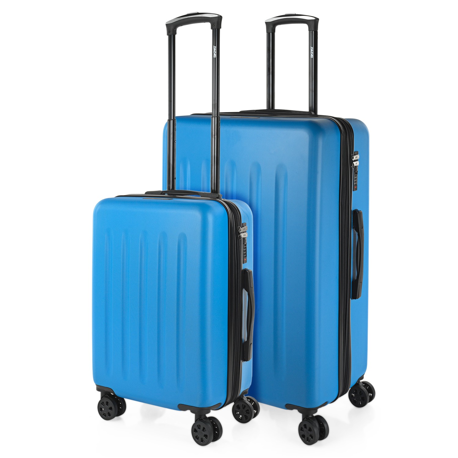 Set di tre valigie trolley misura 50/60/70 realizzate in ABS, un materiale leggero e resistente.