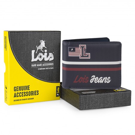 A Lois apresenta a coleção RUNDLE. Fiel ao seu estilo, a marca Lois apresenta um design distinto sem perder o seu toque malandro, no ADN da marca está o facto de nunca parar de trabalhar sempre atenta às tendências da moda, sem nunca esquecer a sua personalidade e o espírito Denim. Por trás de cada artigo, os designers colaboram com o departamento de atendimento ao cliente, para conhecer e atender as reais necessidades dos clientes, oferecendo assim soluções baseadas nas reais exigências dos consumidores. Os materiais utilizados são da mais alta qualidade, os acabamentos cuidam do mais ínfimo pormenor e as cores escolhidas estão sempre na moda. Estamos orgulhosos do nosso trabalho e isso reflecte-se nas colecções. Nesta coleção, incorporámos a tecnologia RFID PROTECTION, que impede o acesso por radiofrequência aos nossos cartões. O seu dinheiro, para além de estar elegantemente guardado, estará seguro. Carteira da marca Lois. Características principais:. Vários compartimentos para cartões, moedas e documentação. Medidas: 11x8,5x1 cm. Materiais: Leatherette. O principal objetivo da Lois é criar clientes felizes e sabemos que em breve será um deles. Materiais: Leatherette.